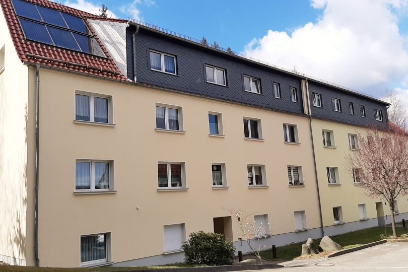 - Dachgeschossausbau; Vollwärmeschutz; jede Wohnung mit Balkon; Isolierkunststofffenster; Schiefereindeckung der Gauben;